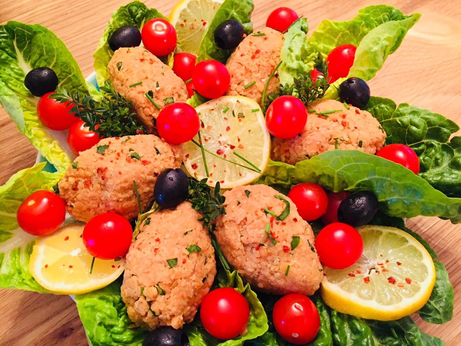 Linsenköfte bestehen aus roten Linsen und feinem Bulgur. Gerade an warmen Tagen schmecken sie mit Salat besonders gut. Kennt ihr diese leckere, sogar vegane Art von Köfte?                     Nein? Dann probiert dieses Rezept unbedingt mal aus!                                                              Für die Linsenköfte (je nach Größe bis 20 Stück ) benötigt ihr folgende Zutaten :                                                              ॐ 300g rote Linsen                               ॐ 300g Bulgur (feinen)                               ॐ 500 ml Wasser + etwas mehr                               ॐ50 ml Olivenöl                               ॐ 1 große Gemüsezwiebel *                               ॐ 2 EL Tomatenmark                               ॐ 1 EL Paprikamark                               ॐ 1 bis 2  Tl Salz                               ॐ 1/2-1 Tl Kreuzkümmel je nach Geschmack                               ॐ 1/2 -1  TL Paprikapulver je nach Geschmack                               ॐ2 Frühlingszwiebeln*                               ॐ 1/2-1 Tl Blattpaprika mild oder scharf                               ॐ2 bis 3 Umdrehungen schwarzen Pfeffer                               ॐ 1/2 Bund glatte Petersilie                               ॐ Saft einer halben oder ganzen Zitrone, je nach Geschmack                               ॐZitronenspalten nach Belieben                               ॐSalatblätter / Salatzherzen                               ॐGranatapfelsirup                                                              Die Linsen in einen Sieb geben, waschen und kurz abtropfen lassen. Ebenso den Bulgur mit kaltem Wasser abspühlen.                               Die Zwiebel mit einer Reibe fein reiben oder sehr klein schneiden                                                              Die Linsen in einen Topf mit 500 ml Wasser geben und circa 15 bis 20 Minuten kochen bis sie gar sind.                               Den Bulgur hinzugeben mit den Linsen verrühren ,vom Herd ziehen und mit geschlossenem Topfdeckel circa 20 bis 30 Minuten aufquellen lassen.                               In der Zwischenzeit circa 200 bis 300 ml Wasser mit  dem Wasserkocher aufkochen.                                                              In einem Topf das Olivenöl hineingeben erhitzen und die Zwiebeln kurz glasig anbraten.                               Das Paprikamark , das Tomatenmark und die Gewürze hinzugeben und 1 Minute mit anbraten.                               100 ml heißes Wasser hinzufügen und 3 Minuten bei mittlerer Hitze köcheln lassen und zu der Linsen-Bulgur-Mischung hinzufügen und gut verrühren.                               Jetzt könnt ihr nochmal abschmecken und nach Bedarf nachwürzen.                                                              Die Petersilie waschen, abzupfen und ganz klein schneiden.                               Ebenso die Frühlingszwiebeln waschen und ganz fein schneiden.                                                              Die abgekühlte Linsen-Bulgurmischung in eine große Schüssel geben , Petersilie und Frühlingszwiebeln und den Zitronensaft dazugeben und gut miteinander vermengen.                                                              Jetzt könnt ihr daraus kleine oder große Köfte / Frikadellen formen und auf Salatherzen mit Zitronenspalten servieren oder in große Salatblätter einrollen, etwas Ganatapfelsirup darüber träufeln und genießen.                                                              * manche Yogis verzichten auf Zwiebel und Knoblauch um den Energiefluss nicht zu stören                                           Anmerkung:                                                                         ॐDiese Mischung darf nicht zu matschig oder zu trocken sein.                                                              ॐIst die Masse zu trocken, dann nach und nach gekochtes Wasser hinzufügen, bis der Bulgur weich aber nicht matschig ist.                                                              ॐIst die Masse zu matschig, dann könnt ihr noch etwas Bulgur hinzufügen und aufquellen lassen.                                                              ॐ Ihr könnt die Linsenfrikadellen als Beilage , Vorspeise oder als Hauptspeise servieren!                                                              ॐAchtet darauf, dass ihr feinen Bulgur kauft! Es gibt extra Bulgur für Köfte. Diese findet ihr im türkischen Supermarkt.                                                              ॐGranatapfelsirup gibt es im türkischen Supermarkt. Achtet darauf, dass ihr 100 % igen kauft ohne weitere Zusätze wie Zucker.                                                              ॐ Paprikamark findet ihr ebenfalls im türkischen Supermarkt. Diese gibt es in milder und in scharfer Variante.                                                                                             Viel Spaß beim Nachmachen!                               Deine Nalan